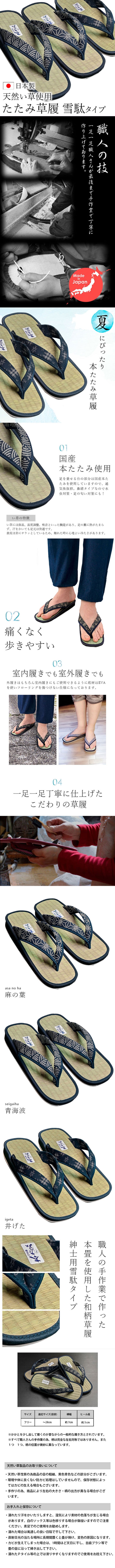 ★純国産品 職人の手作業で作った本畳を使用した和柄草履、紳士用雪駄(せった)タイプ!