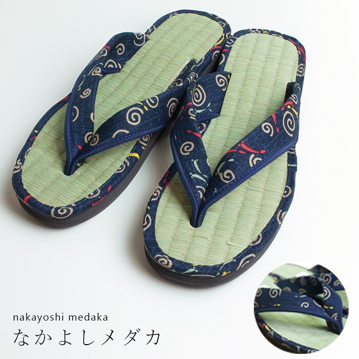 【なかよしメダカ/Lサイズ】藍染め 和柄たたみ草履 | ★純国産品 職人の手作業で作った本畳を使用した和柄草履!