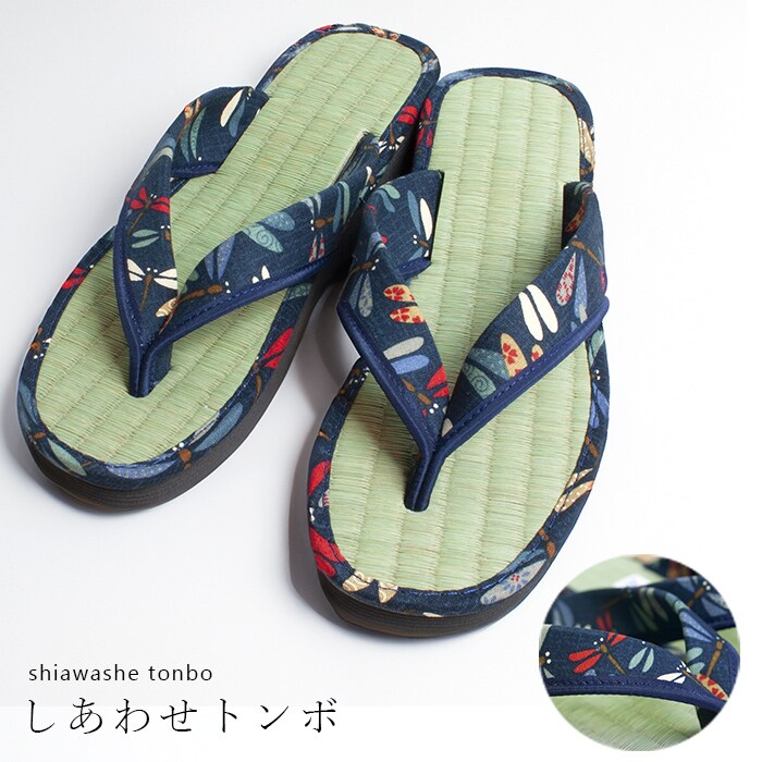 - 【しあわせトンボ/Lサイズ】藍染め 和柄たたみ草履