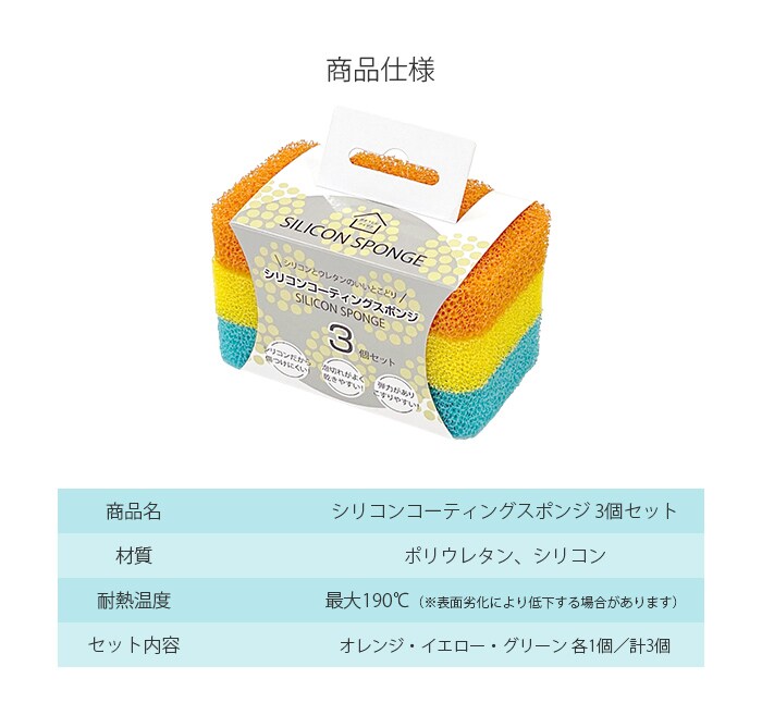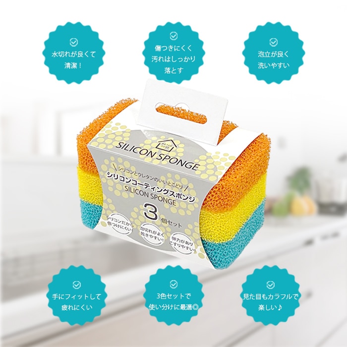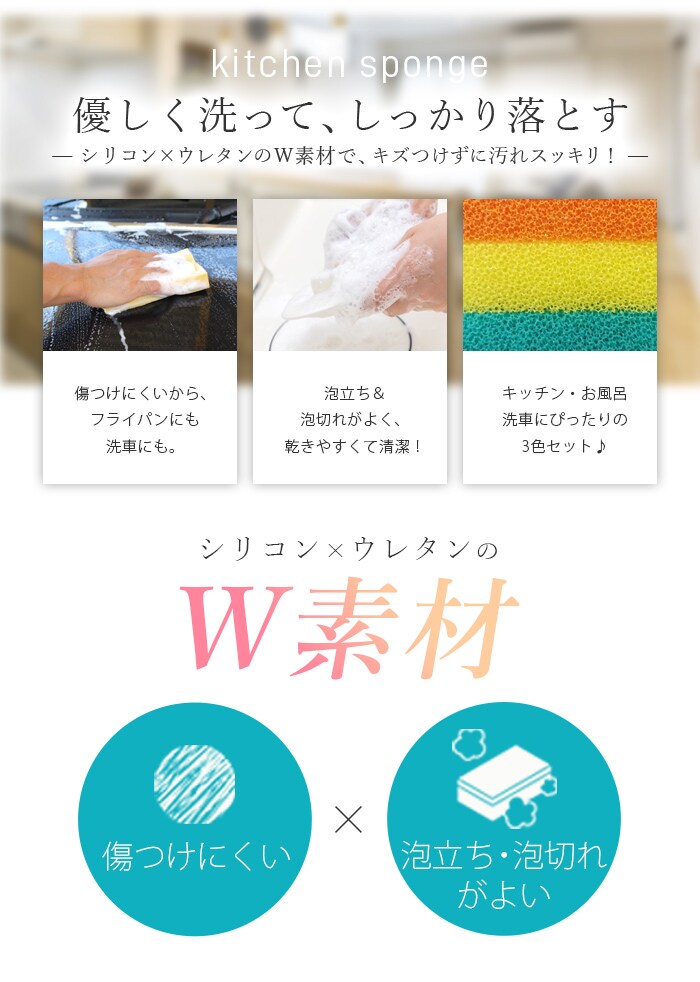 【3色組×3個セット】シリコンコーティングスポンジ | ★シリコンとウレタンのいいとこどりスポンジ!