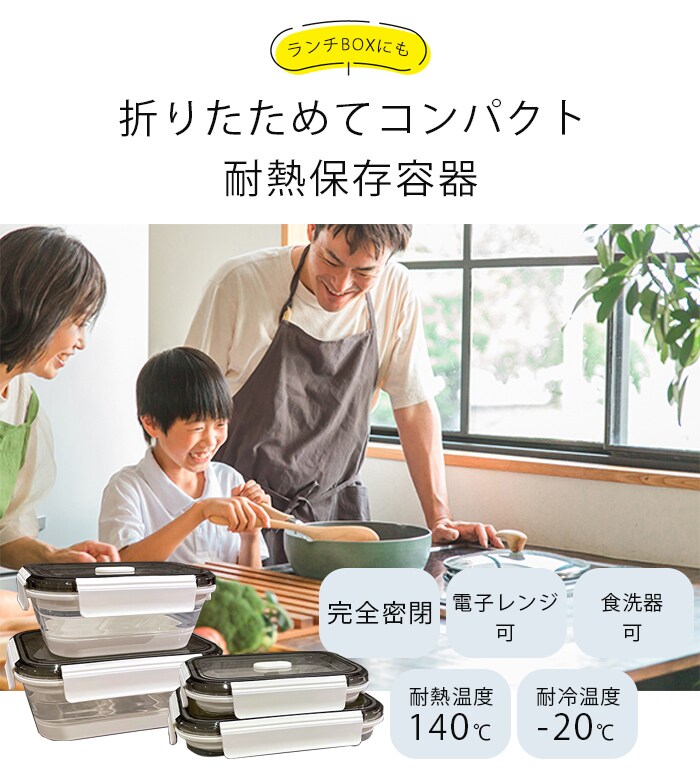 たためるシリコン保存&ランチBOX(丸型) 1000ml | ★折りたためてコンパクト!