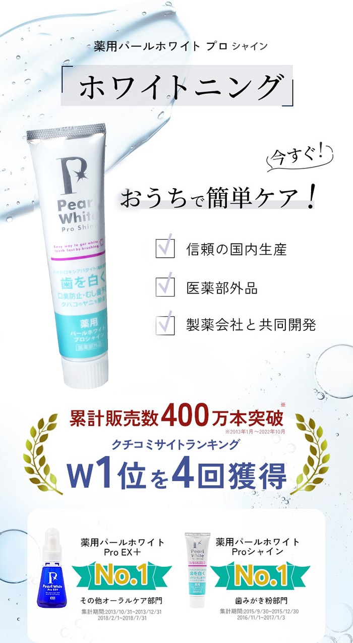 【2本セット】薬用 パールホワイト プロ シャイン 120g | ★薬用の力でより白く、より健康的な歯に!