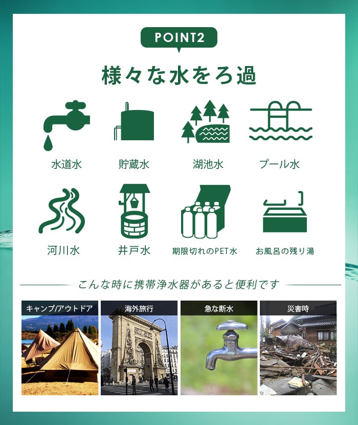 ◇キャンプ等野外レジャーで、衛生的な水が飲めます。