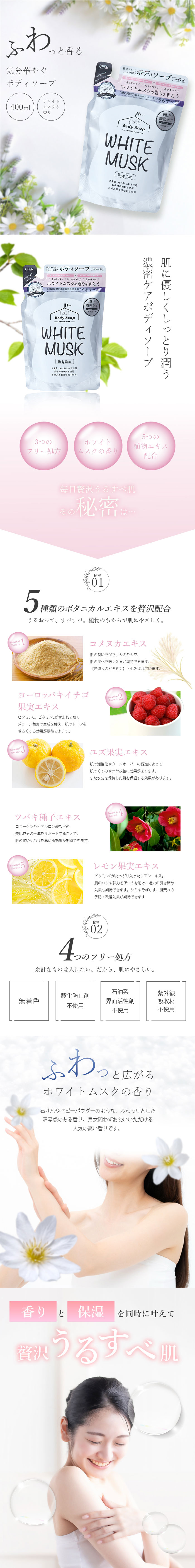 【400ml×2個組】ホワイトムスク ボディソープ詰替タイプ | ★香り広がる、しっとりモイスト、気分華やくボディソープ!