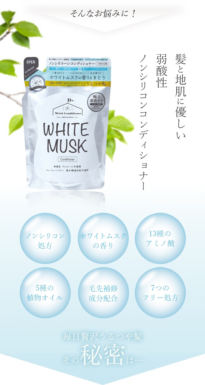 【400ml×4個組】ホワイトムスク コンディショナー詰替タイプ | ★香り広がる、しっとりモイスト、気分華やくコンディショナー