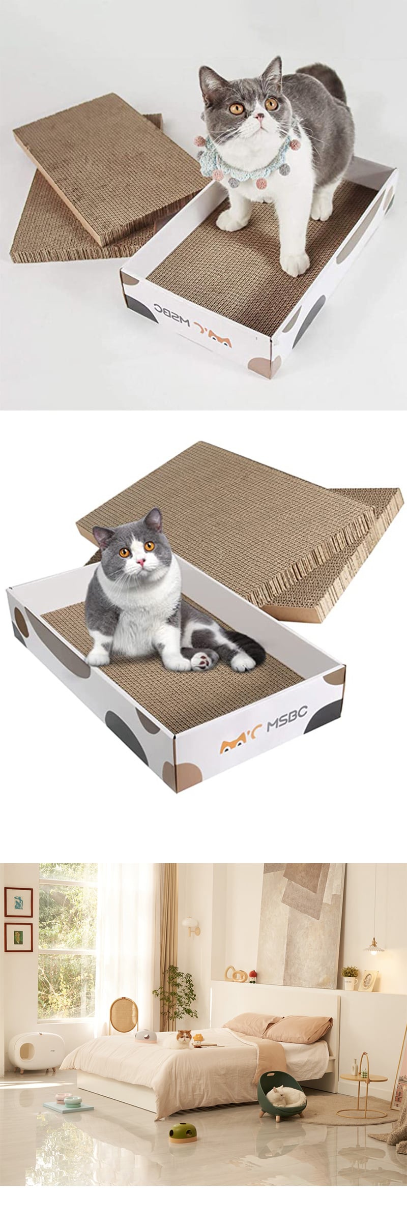 猫用 爪とぎダンボールBOX ダンボール3枚セットHEBENA | 表裏使用できるダンボールが3枚ついていて、長く使えるダンボール爪とぎ