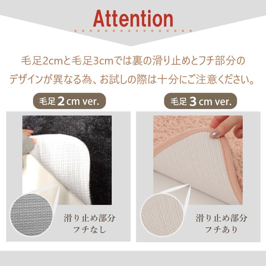 ●毛足2cmと3cmでは同色でも色味に若干の差異が生じる場合がごさいます。予めご了承ください。