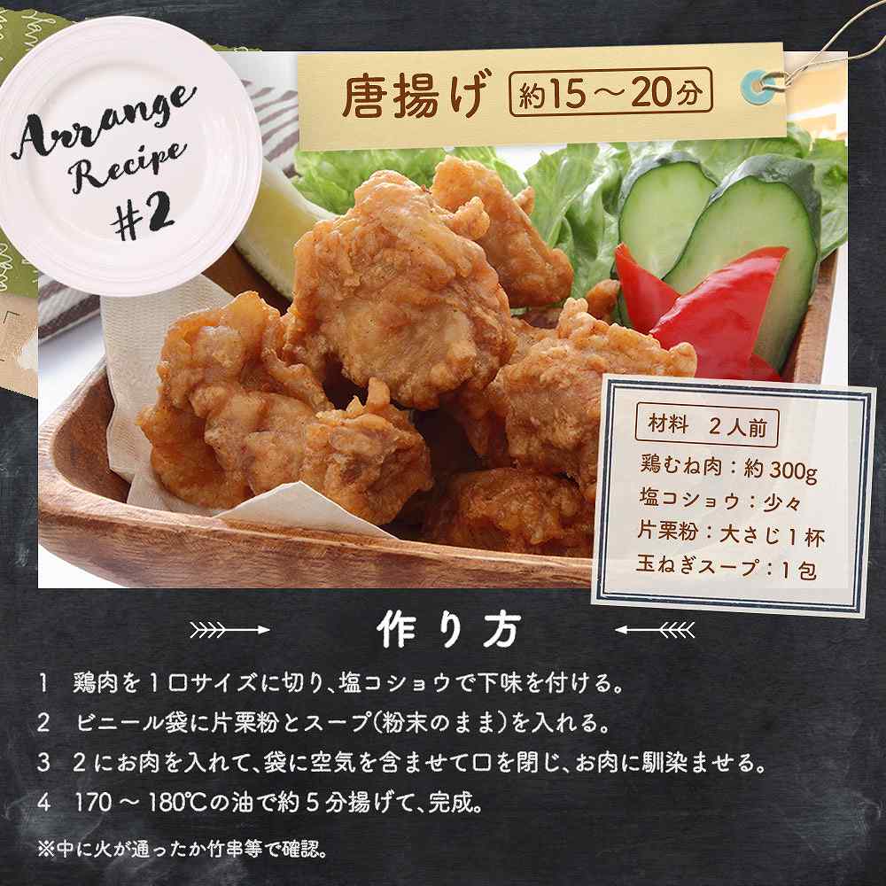 ぶどう糖(国内製造)、食塩、オニオン粉末、デキストリン、しょうゆ粉末、ガーリック粉末、酵母エキス、椎茸エキス、食用植物油脂、うきみ(パセリ)/調味料(アミノ酸等)、(一部に小麦、大豆を含む)