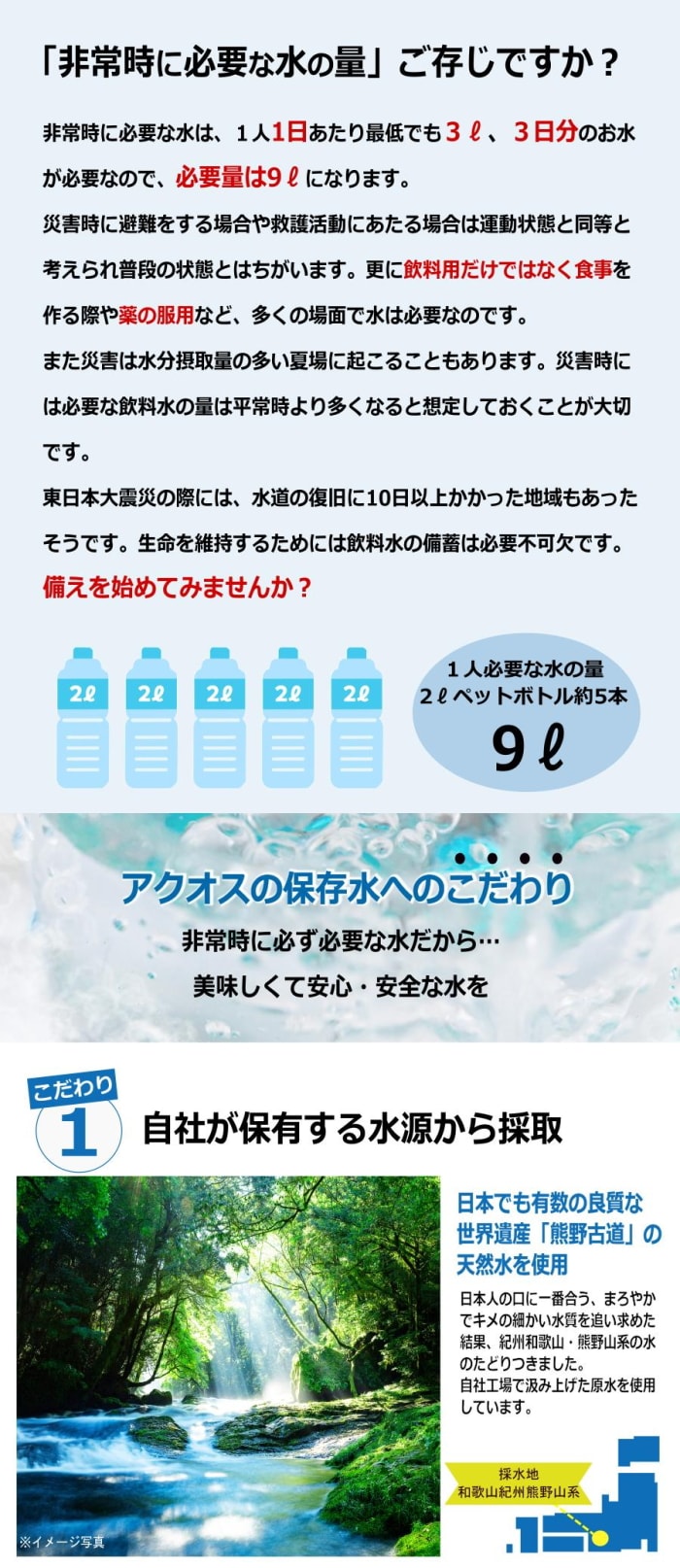 2.メーカー自社が保有する水源から採取し加工しているので安全です。