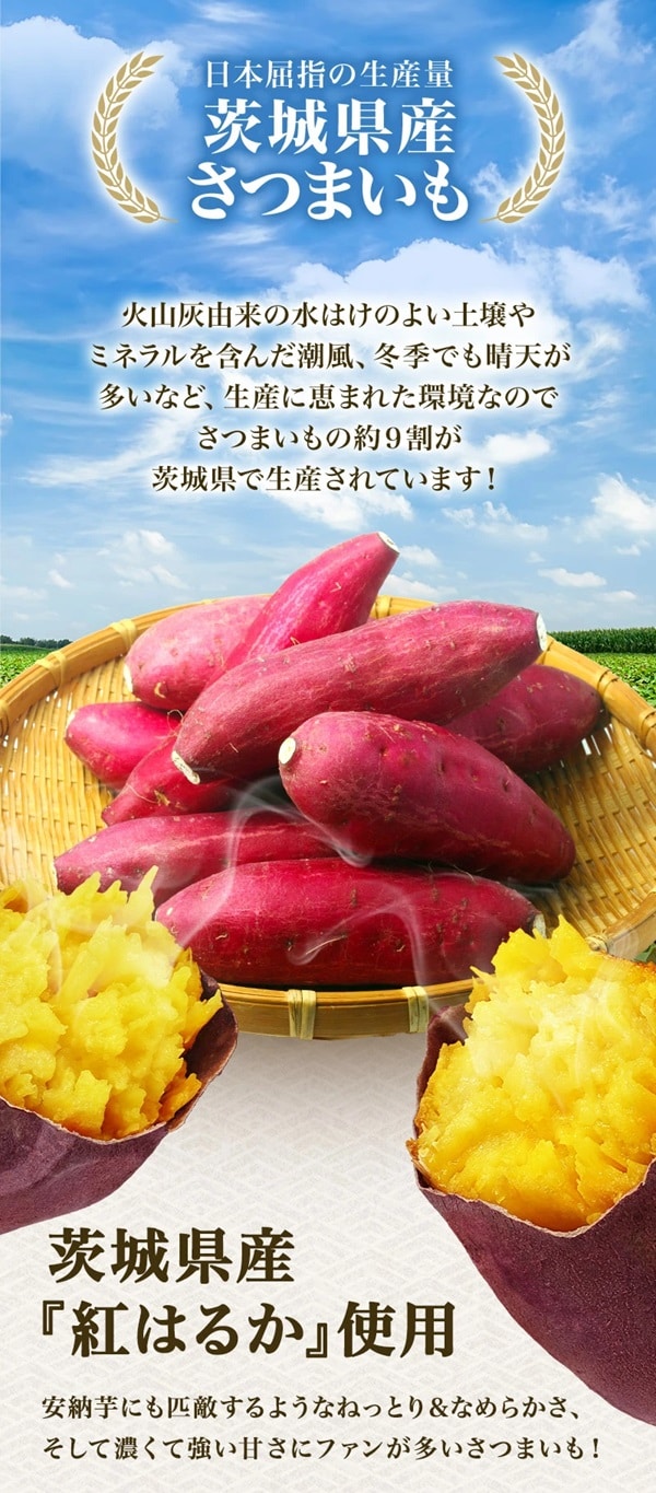 日本屈指のさつまいも生産量を誇る茨城県は、火山灰山来の水はけのよい土壌やミネラルを含んだ潮風、冬季でも晴天が多いなど、生産に恵まれた環境なのでさつまいもの約9割が生産されています。