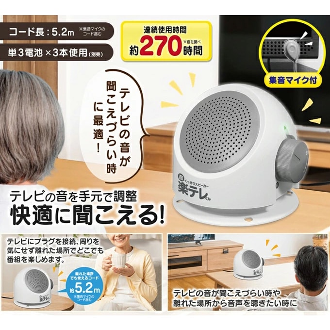 音くっきりスピーカー 楽テレくん | テレビの音が聞こえずらい時に、お手元テレビスピーカー !