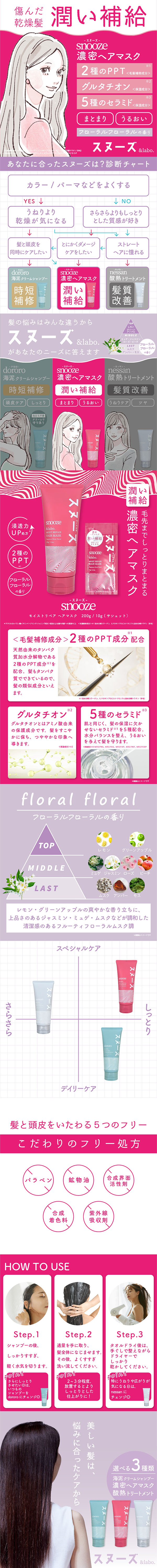 毛先までしっとりまとまる濃密ヘアマスク『snooze(スヌーズ)』