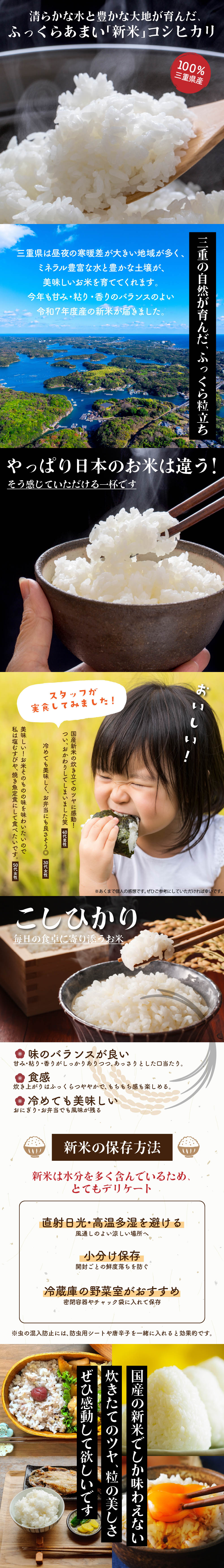 【10kg(5kg×2袋)】【白米】三重県産コシヒカリ 令和7年産 | 冷めても美味しい、三重の自然が育んだコシヒカリ♪