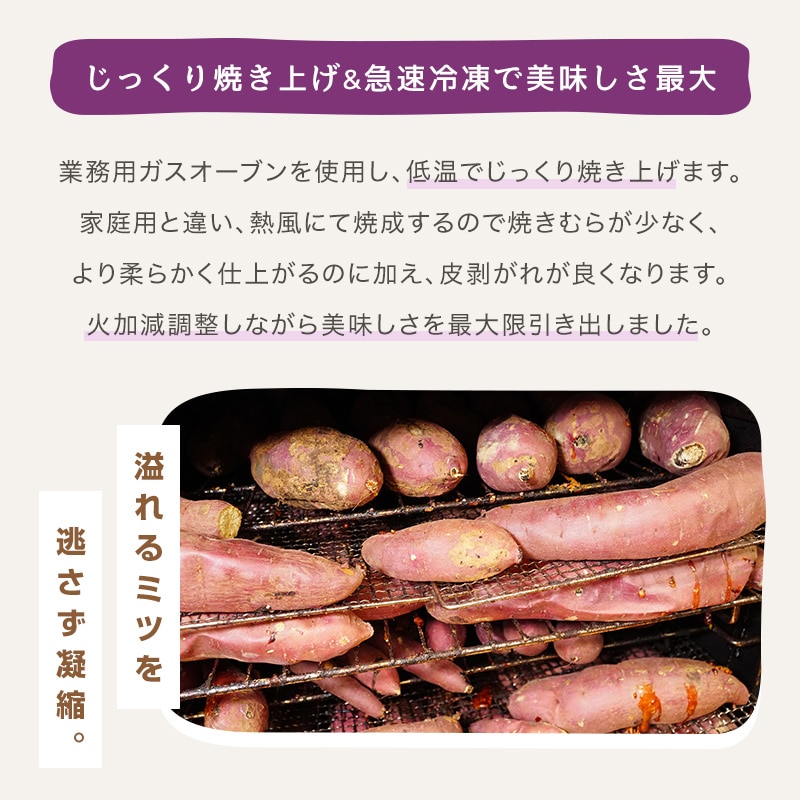 冷凍焼き芋は60日間以上熟成させた鹿児島県産紅はるかを使用しております。試行錯誤を重ねて火加減調整しながらじっくり低温にて焼き上げ、美味しさを最大限引き出しました。