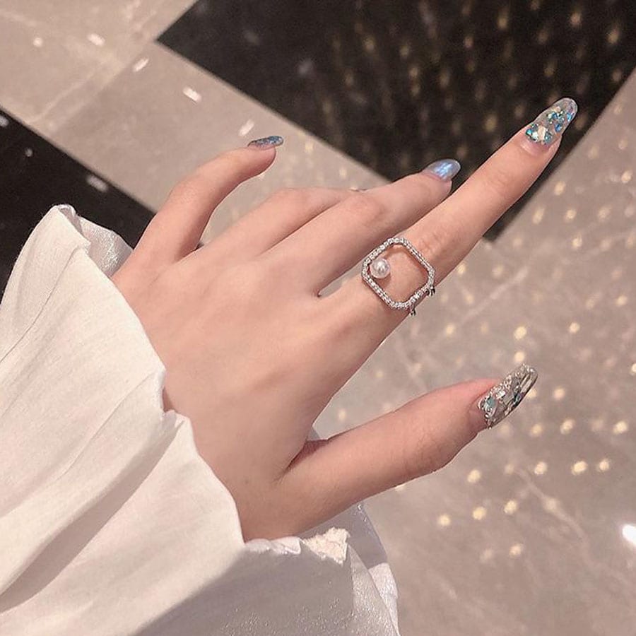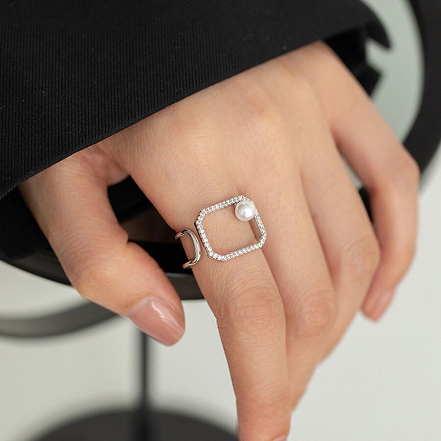 【シルバー】ラインストーン スクエアリング | 普段使いからイベントにも使えるシンプルな指輪