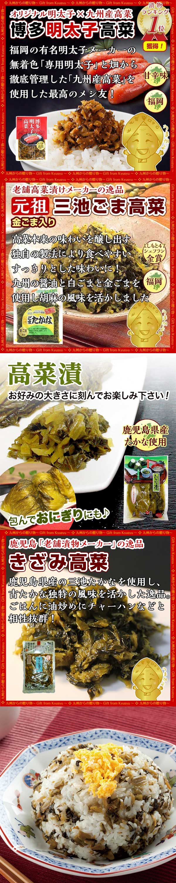 【九州高菜4種】大人気 九州高菜4種類セット | 老舗漬物屋こだわりのめし友4種セット♪明太高菜・ごま高菜・ふるさと高菜漬け・きざみ高菜