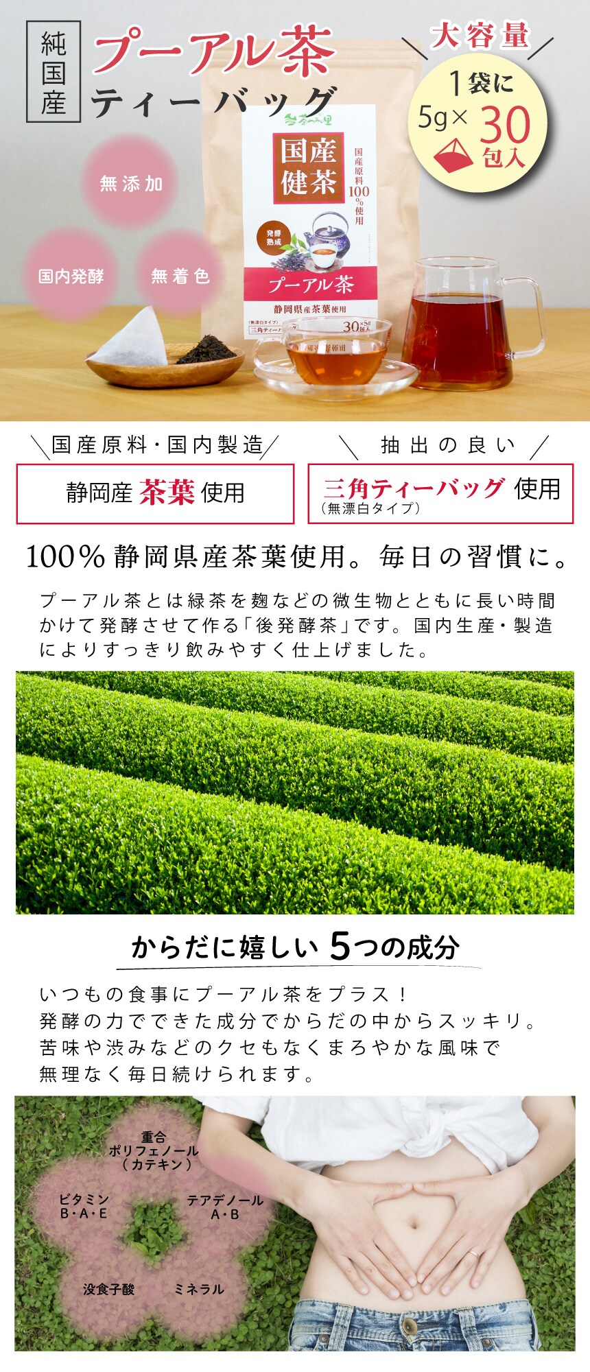 【5g×30包入×3パック】 茶つみの里 健康茶 ≪国産≫ プーアル茶 ティーバッグ | 100%静岡産原料 すべて国内製造で安心