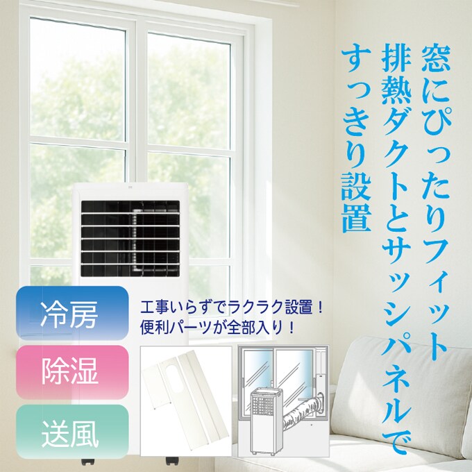 スポットクーラー 設置工事不要 冷房 除湿 送風 | 工事いらずでラクラク設置! 便利パーツが全部入り!