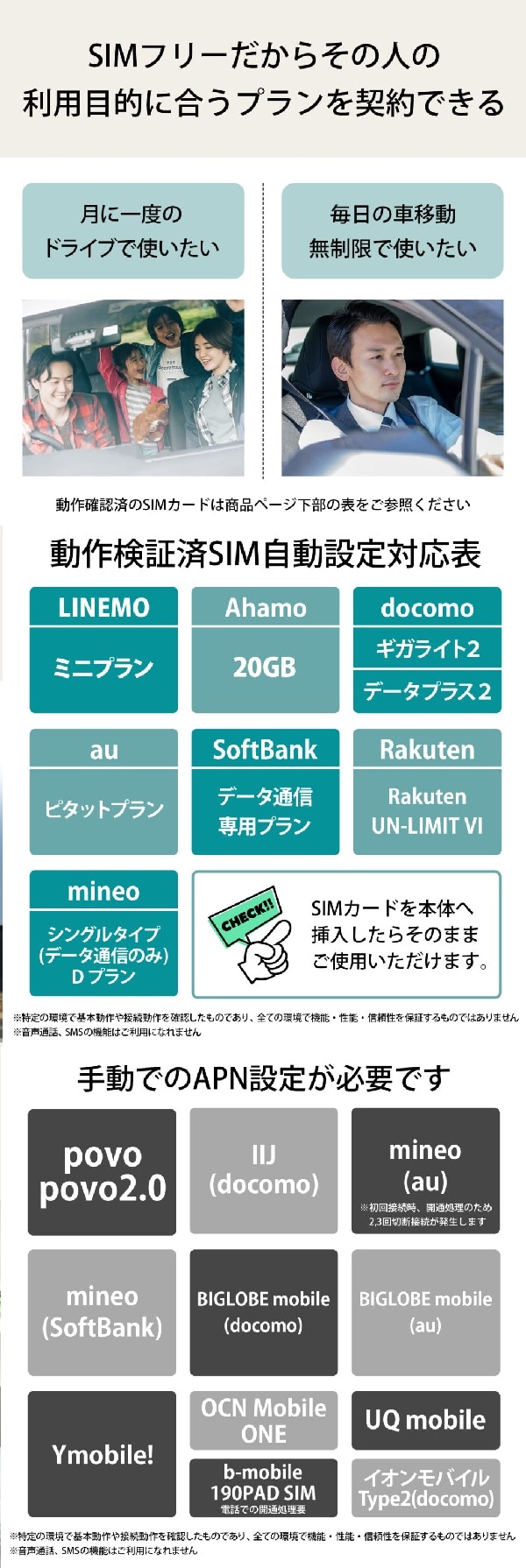 ・注意事項:本製品にSIMカードは同梱されておりません。お客様ご自身でご用意をお願い致します。