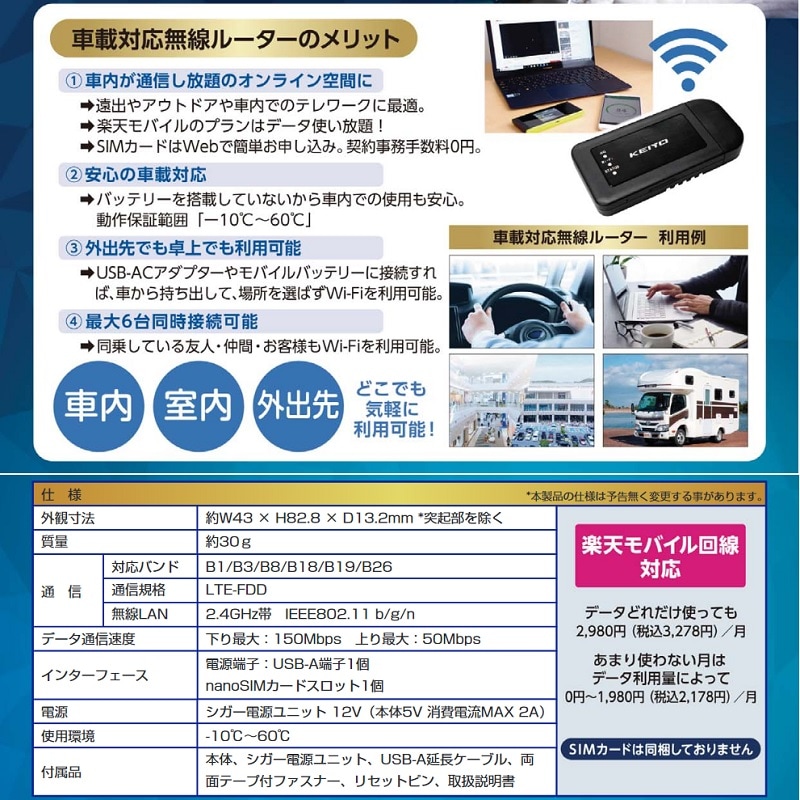 - KEIYO 車載対応Wi-Fiルーター サクッとWi-Fi ...