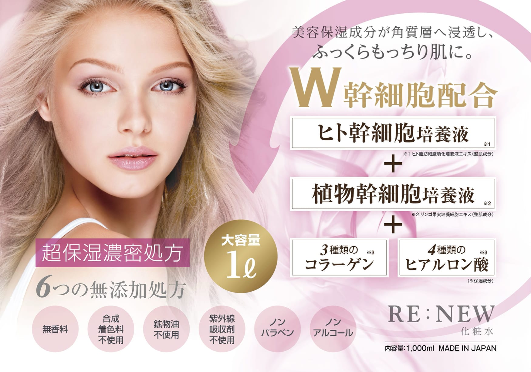 【2本】RE:NEW 化粧水 1000ml | W幹細胞配合!年齢を重ねた肌に潤いを与える次世代のエイジングケア