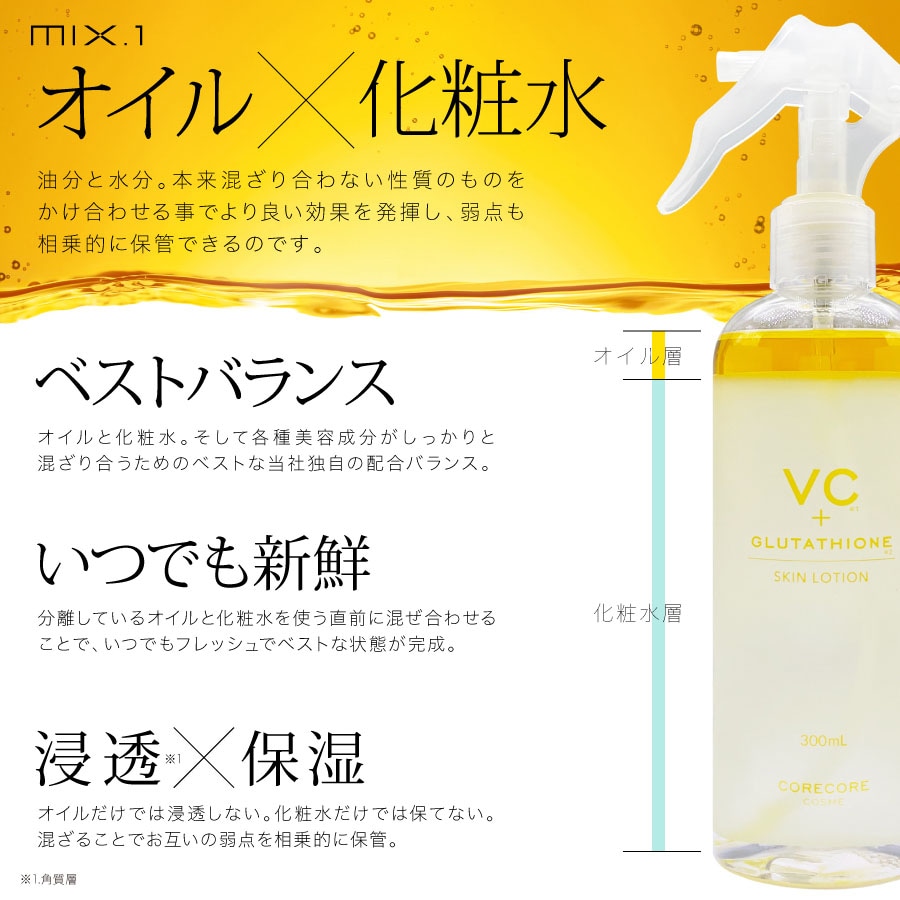 【3本】ビタミンC+グルタチオンSKINLOTION 300ml【CORECORE COSME】 | オイル×化粧水のベストバランスで、振って混ぜて使う化粧水!