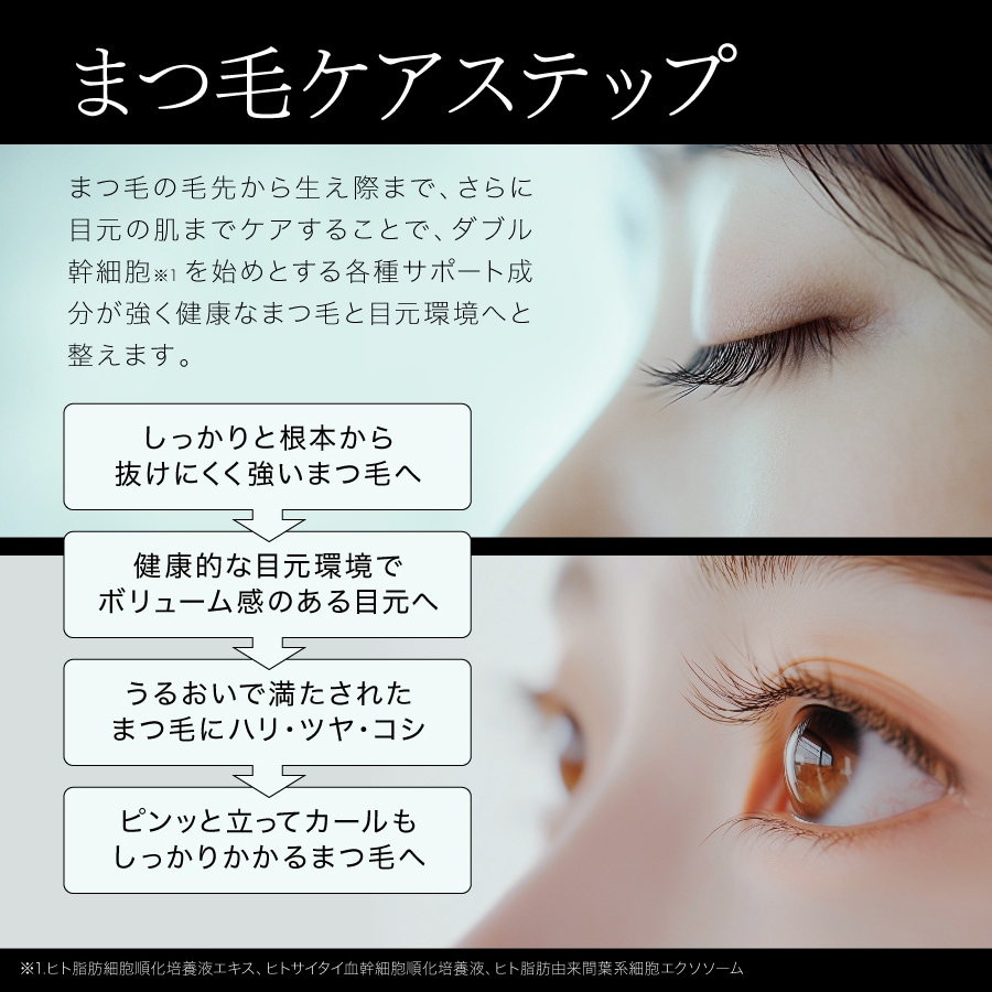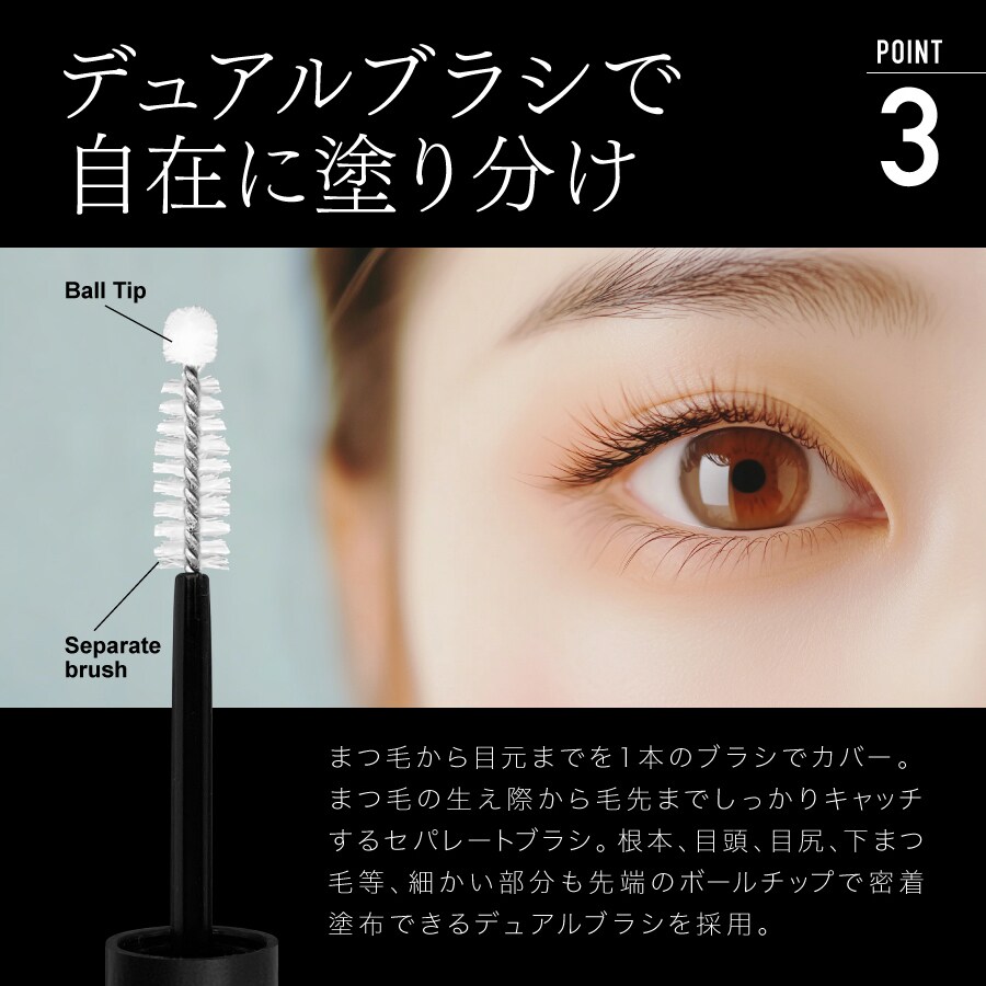 ●マスカラ下地として使用する場合は、美容液が乾いてからマスカラを塗ります。