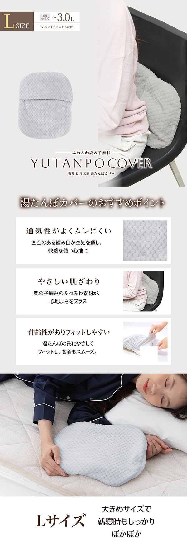 【グレー/Lサイズ/ノーマルタイプ】湯たんぽ専用カバー | ふわふわ鹿の子素材!やさしい肌触り 通気性がよくフィットしやすい。