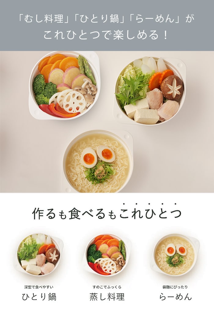 【2色組】クックポット | ★「むし料理」「ひとり鍋」「らーめん」がこれひとつで楽しめる!