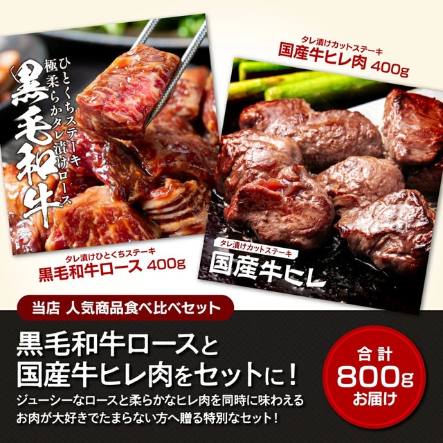 【計800g(400g×2)】黒毛和牛ロース&国産牛ヒレ | 肉本来の濃厚でジューシーな黒毛和牛ロースと贅沢でやわらかな上質ヒレ肉の食べ比べセット!