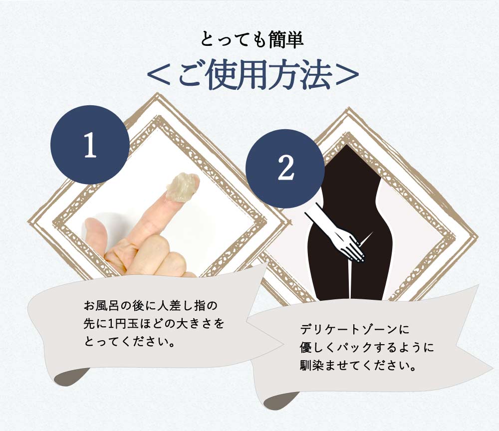 【2】デリケートゾーンに優しくパックするように馴染ませてください。