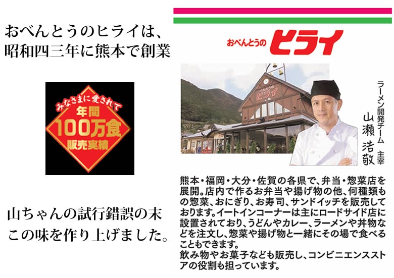 【3食】男!!山ちゃんラーメン 熊本豚骨 | 熊本で有名なおべんとうのヒライ