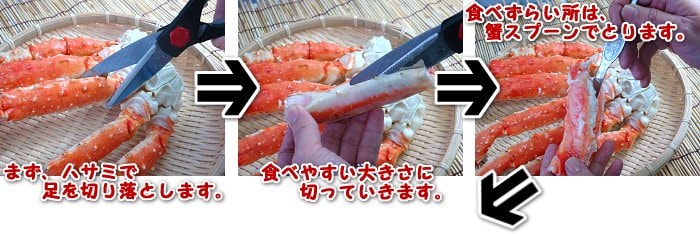 たらば蟹は甲羅に食べる部分がほとんどないので足だけの部分の方が断然お得です。