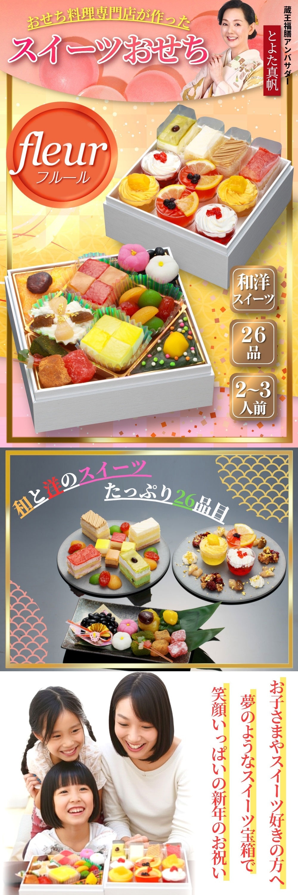 - 【12/30午前着】おせち「Fleur フルール」(6寸/26品/約2-3人前/スイーツ二段重)