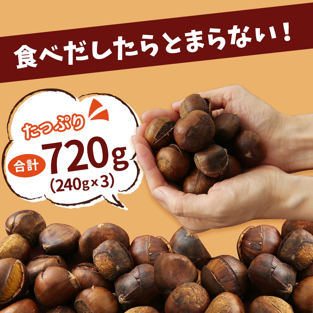 - 【計720g(240g×3袋)】皮付き甘栗(有機栽培栗)