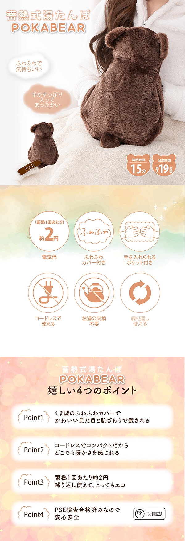 【チョコ】蓄熱式ゆたんぽ ぽかベア | 蓄熱して繰り返し使える!お湯の交換不要の蓄熱式湯たんぽ