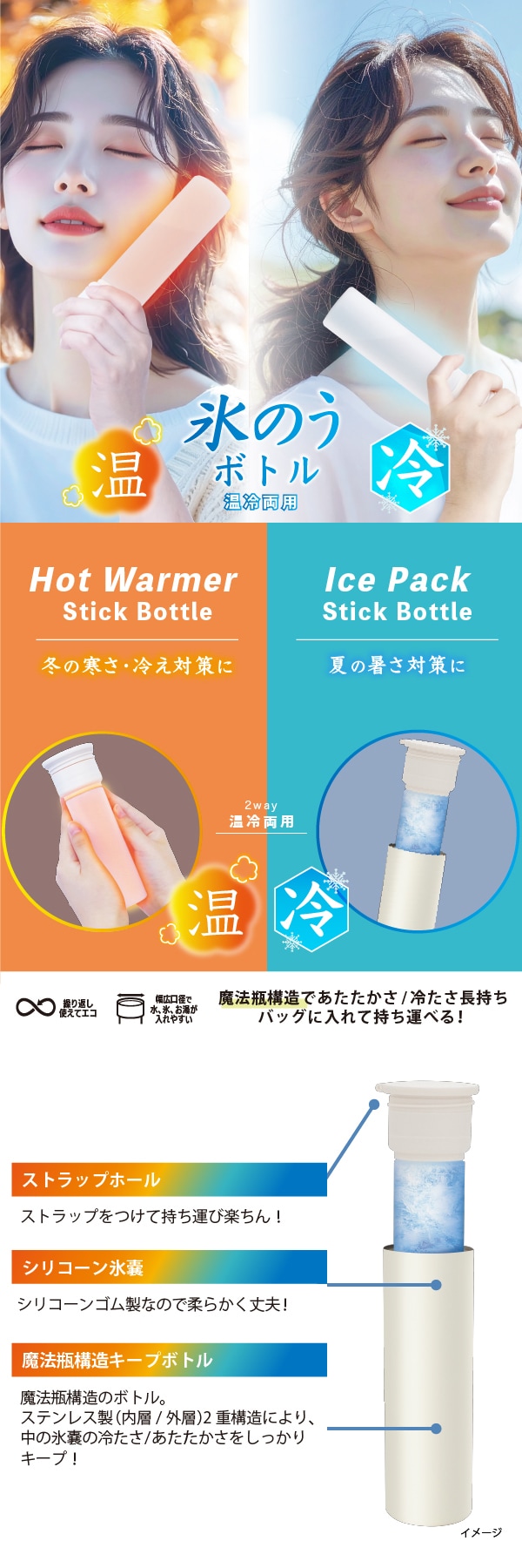 【ペールベージュ】氷嚢ボトル(温冷両用) | 夏の暑さ対策に!冬の寒さや冷え対策に!2WAY温冷両用