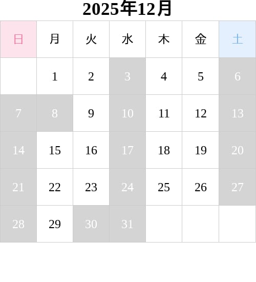 発送日カレンダー