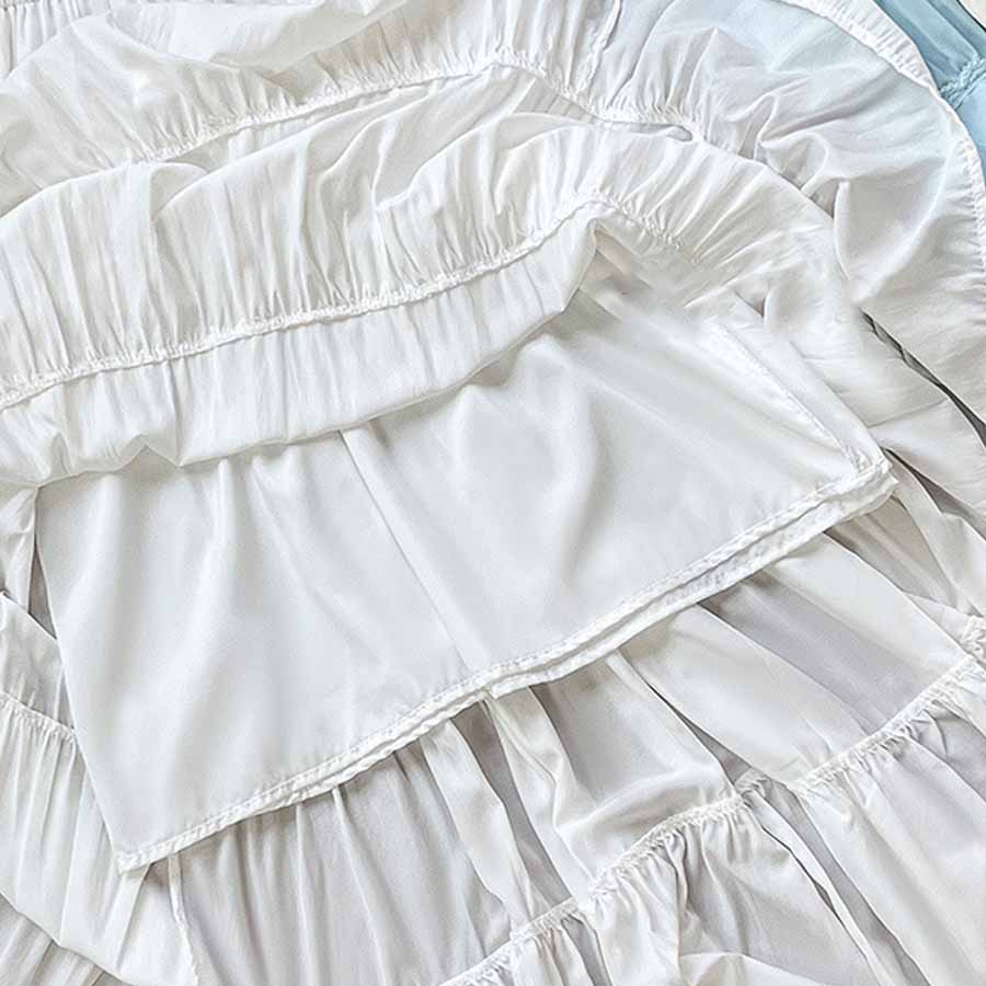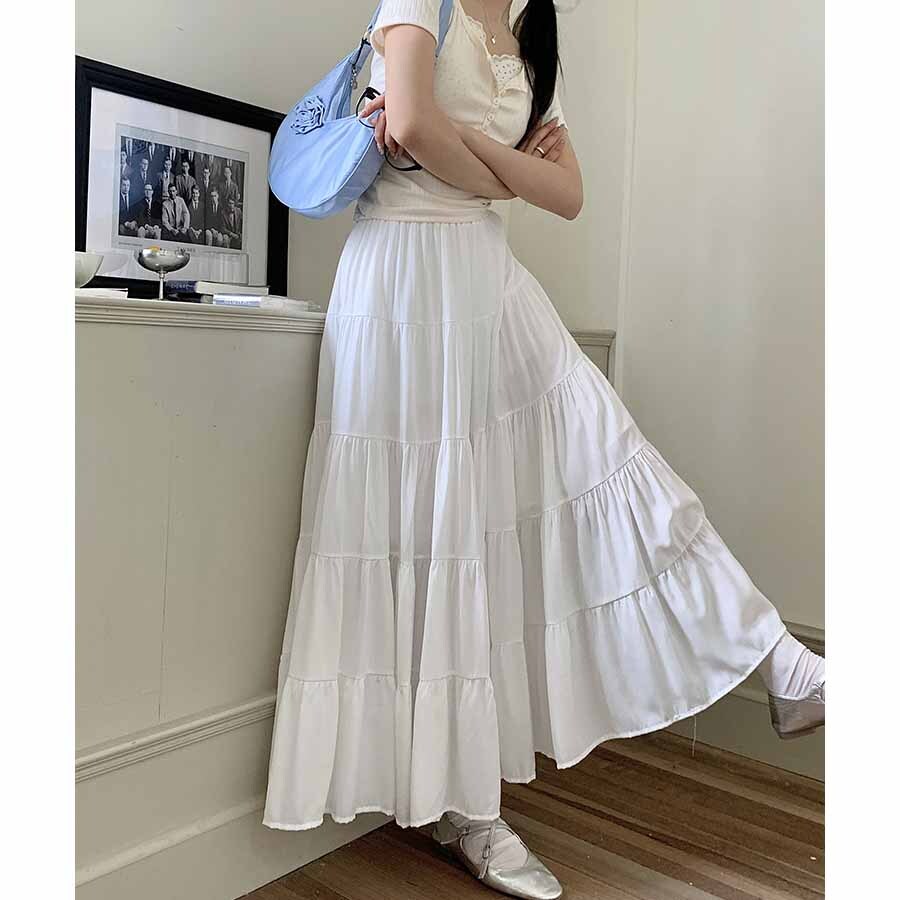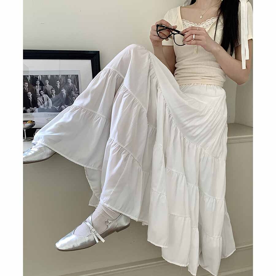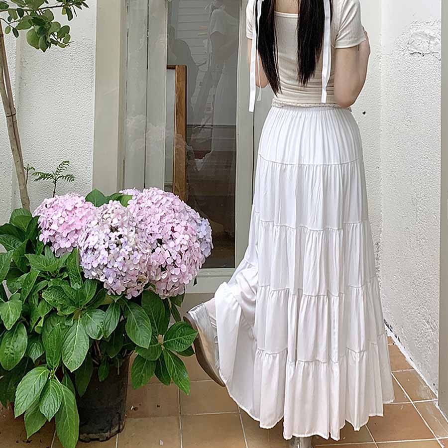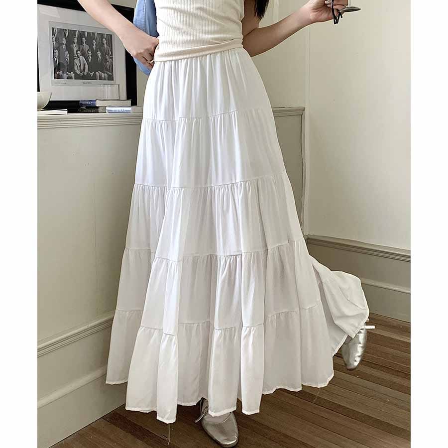 【ホワイト】マキシ丈 ティアードスカート | フレアデザインで上品なウエストゴムスカート