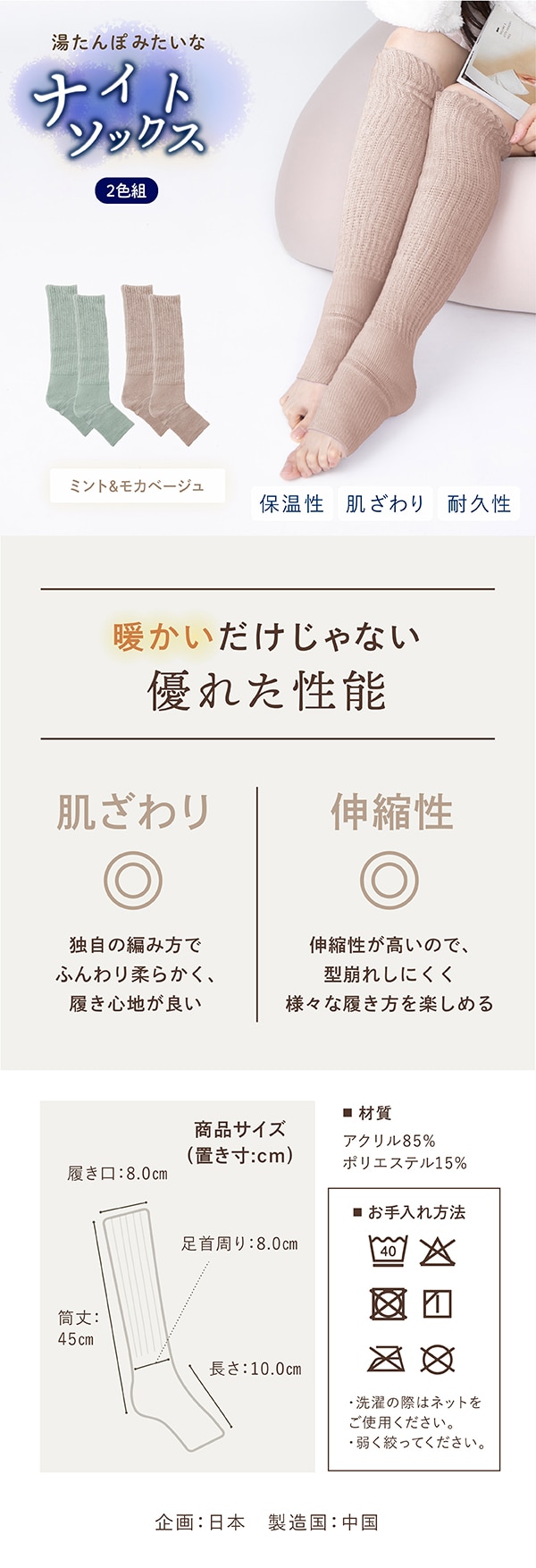 【ミント・モカベージュ】湯たんぽみたいなあったかナイトソックス | 履くだけ湯たんぽのようなぽかぽかソックス