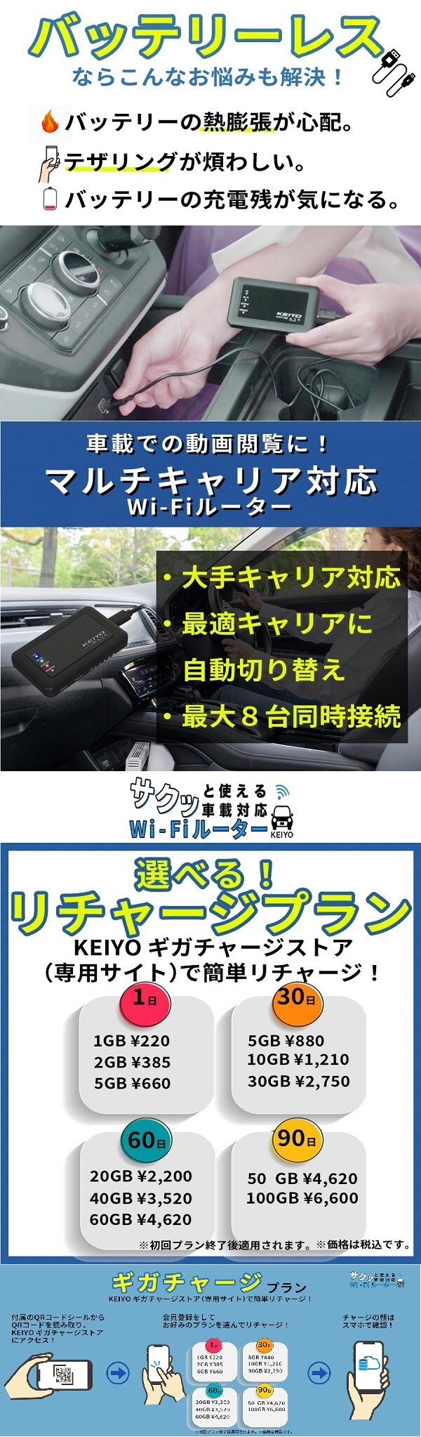 KEIYO 車載対応Wi-Fiルーター サクッとWi-Fi AN-S117 | IM契約不要で、いつでもどこでも車内を快適なWi-Fi環境にできます