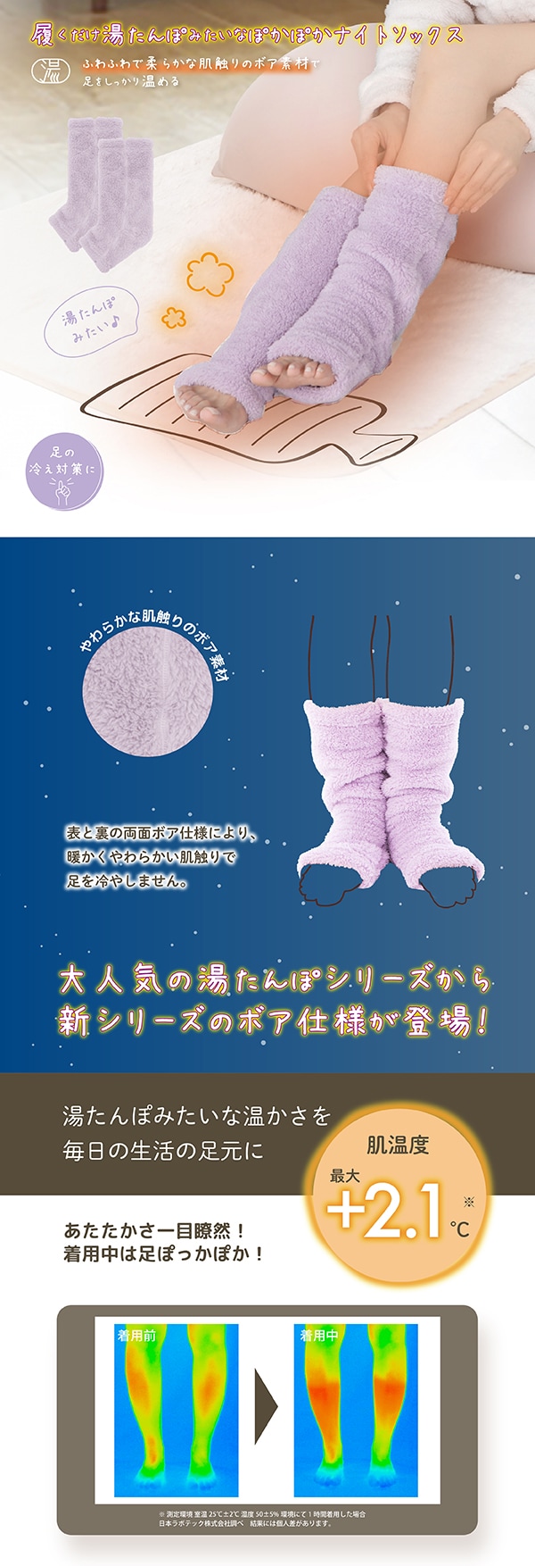 【ラベンダー】湯たんぽみたいなあったかボアナイトソックス | 履くだけ湯たんぽのようなぽかぽかボアソックス