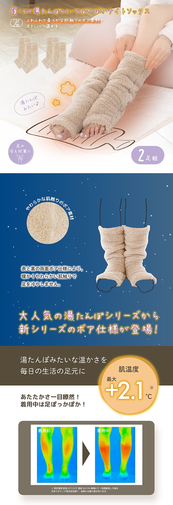 【ベージュ/2足組】湯たんぽみたいなあったかボアナイトソックス | 履くだけ湯たんぽのようなぽかぽかボアソックス
