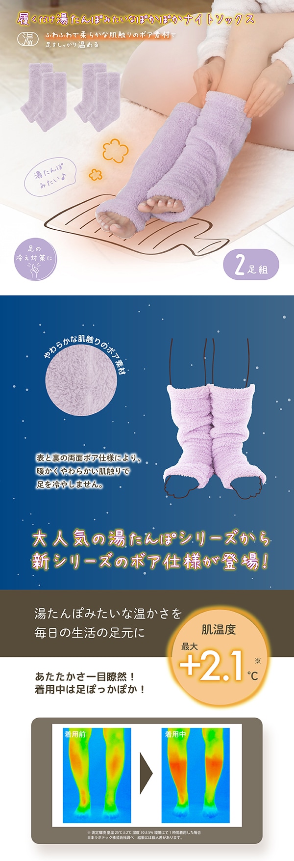 - 湯たんぽみたいなあったかぽかぽかボアナイトソックス ラベンダー 2足