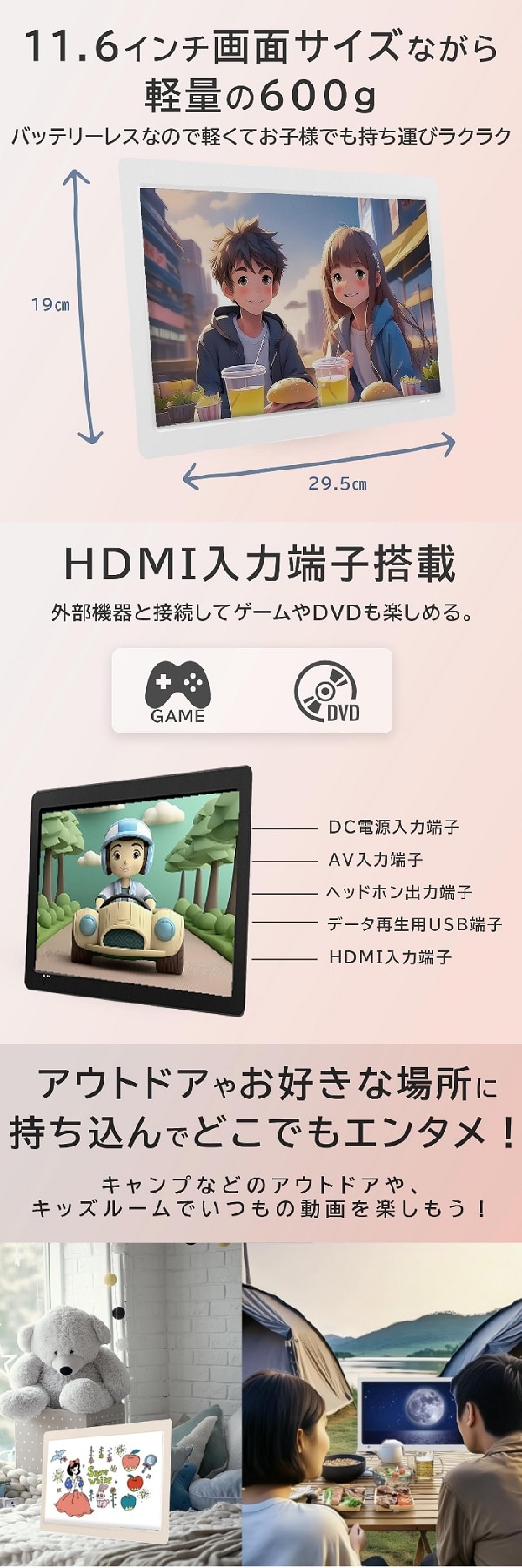 KEIYO APPスマートモニター Android TV搭載 ネット動画対応11.6インチ ホワイト | ネット動画視聴やゲーム機もつなげる/お家で使えるスマートモニター
