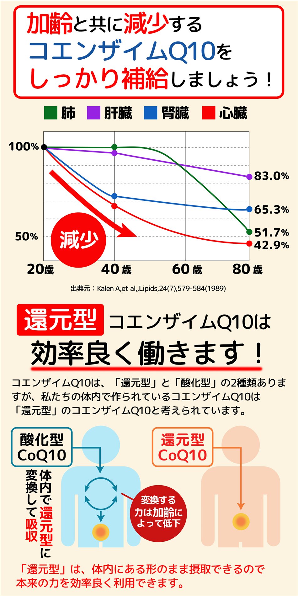 コエンザイムQ10は、「酸化型」と「還元型」の2種類がありますが、体内ではほとんどが還元型に変換してから働きます。還元型コエンザイムは、体内で変換の必要がなく効率がいいのが特徴です。毎日の健康や美容にお役立てください。