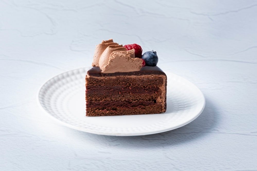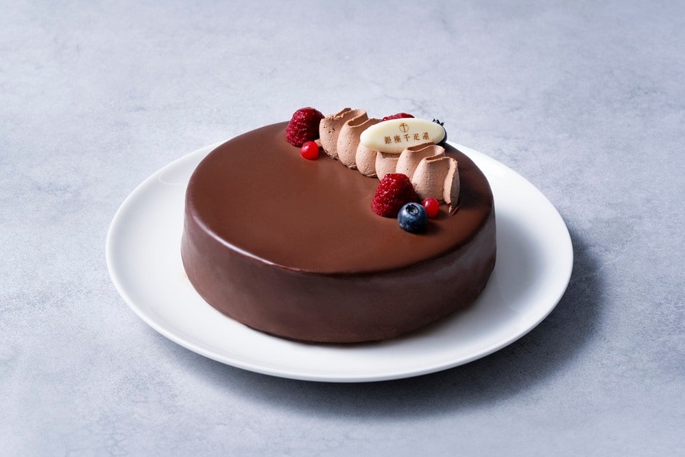 デコレーションは、ラズベリー、ブルーベリー、チョコレートホイップクリームをアシンメトリーに飾り、シンプルな中に、さりげなく目を惹くデザインを取り入れました。