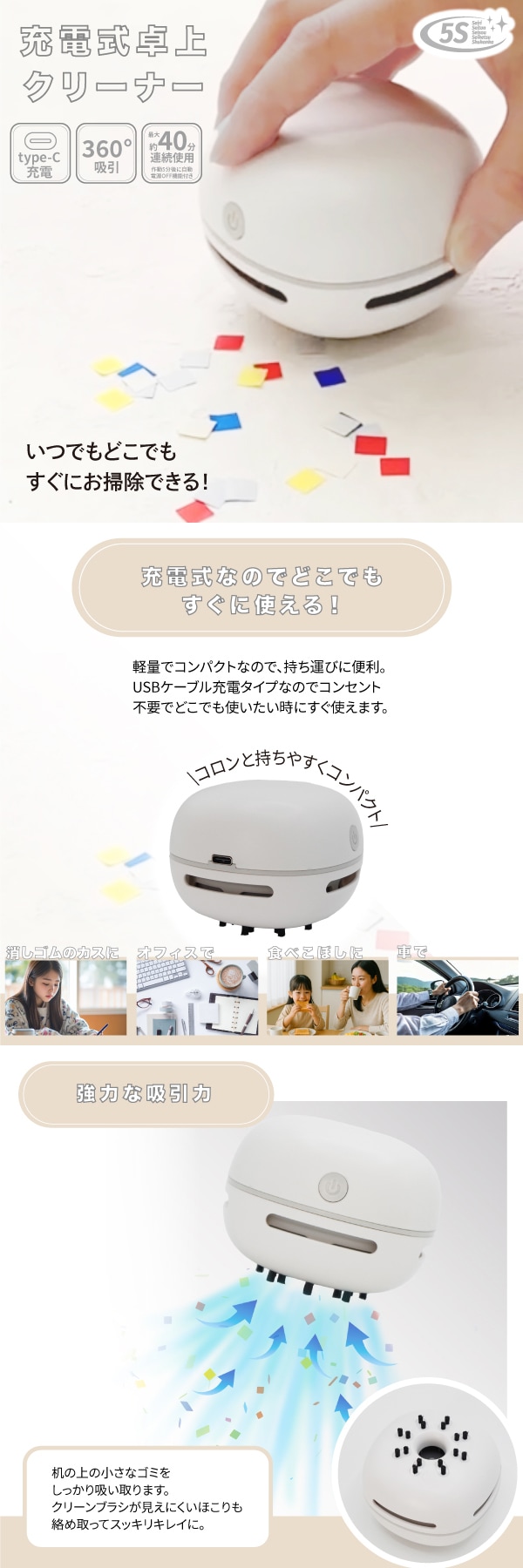 【ホワイト】卓上クリーナー | いつでもどこでもすぐにお掃除できる! 掃除が楽しくなる卓上クリーナー 掃除機