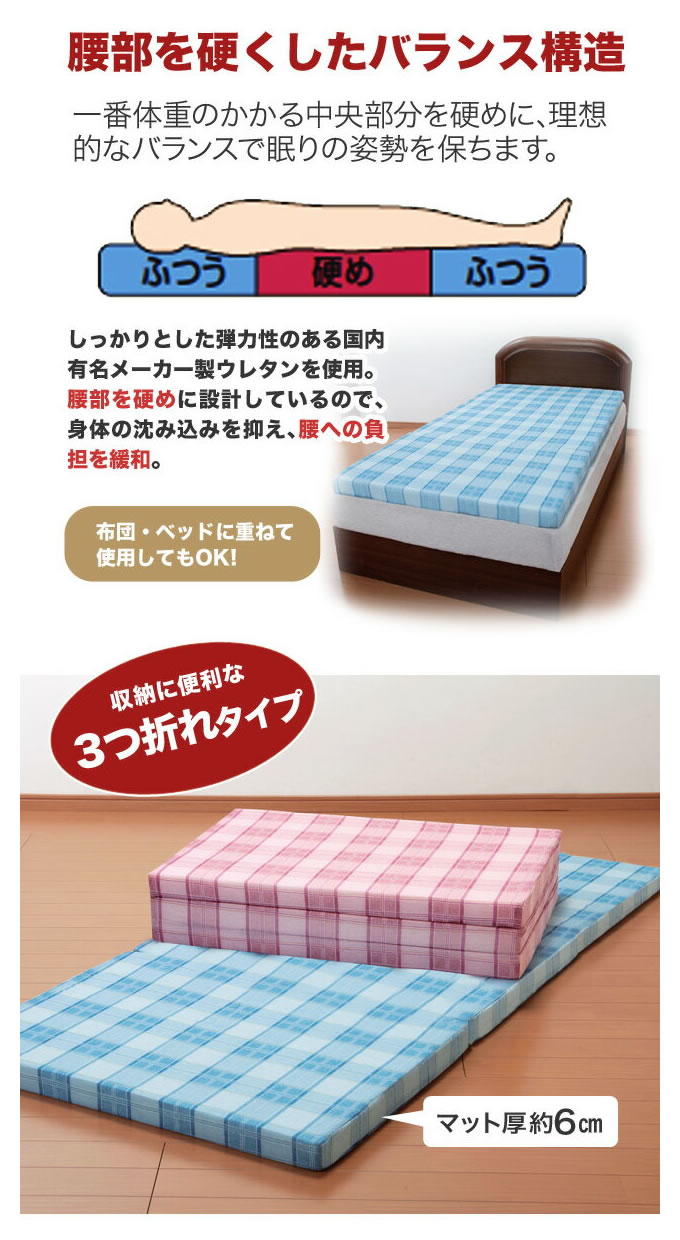 - 【格子ブルー】日本製 <スリープル>腰を支える3つ折れバラン...