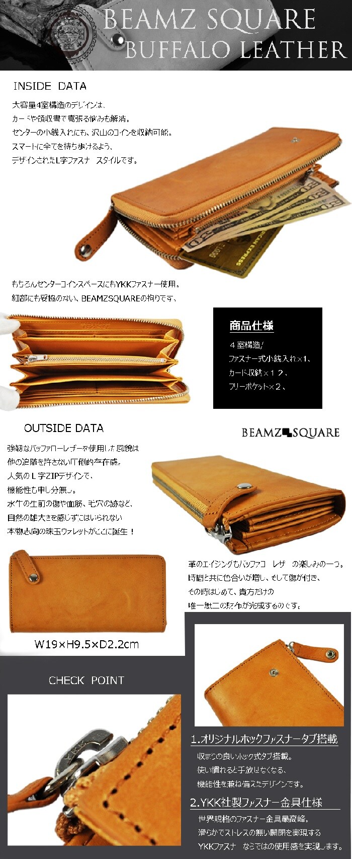 - BEAMZSQUARE バッファローレザー(水牛革)L字ZIPロングウォレット BS-1280BUF